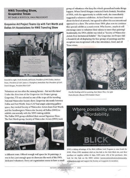 March-Apr: Society of Watercolor Artists “SWA 28th Juried Art Exhibition,” Fort Worth Central Library, Juror Mary Ann Beckwith