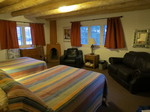 The Cedar Private Bath Main Ranch Level: This house has 2 bedrooms with 2 beds each, 2 baths and a small common area. Perfect for 4. It's between the dining room and office. The rooms rent out as a suite for the entire cabin. This is a great set-up if you have 3 or 4 in your group. I always have this reserved for us. It's a few steps further away, but very private. (See bleow)
