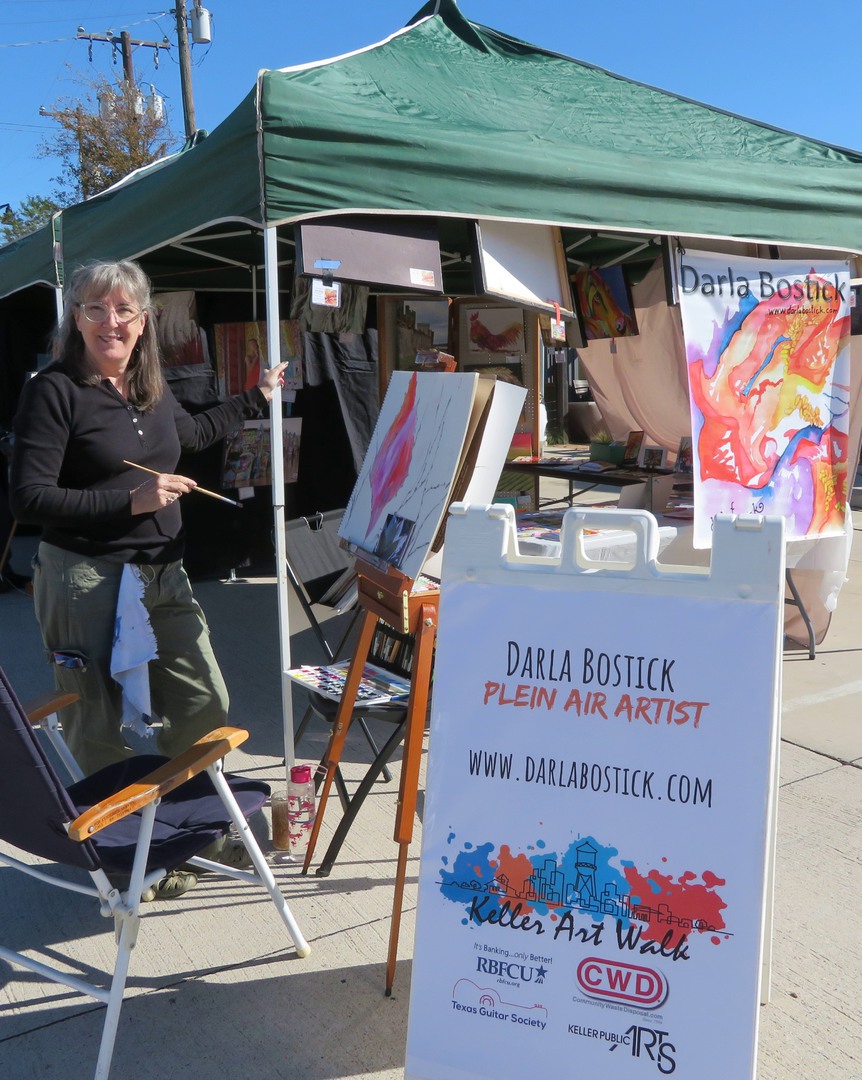 Keller, Texas sponsored me at the Novemner 2021 Keller Art Walk. I was one of the plein air artists stationed among the artist vendors.I demonstrated using India ink with watercolor.