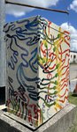 San Marcos, TX Traffic Signal Boxes along Hopkins Street near City Hall and the San Marcos Public Library: Hopkins and Charles Austin, Hopkins and no name, Hopkins and Riverside.